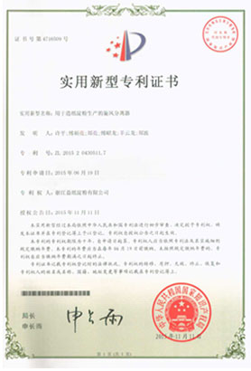 • 旋風分離實用新型專利證書